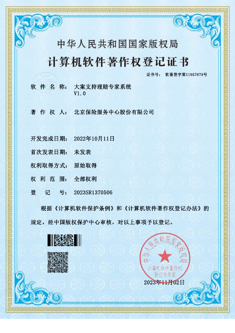 计算机软件著作权登记证书